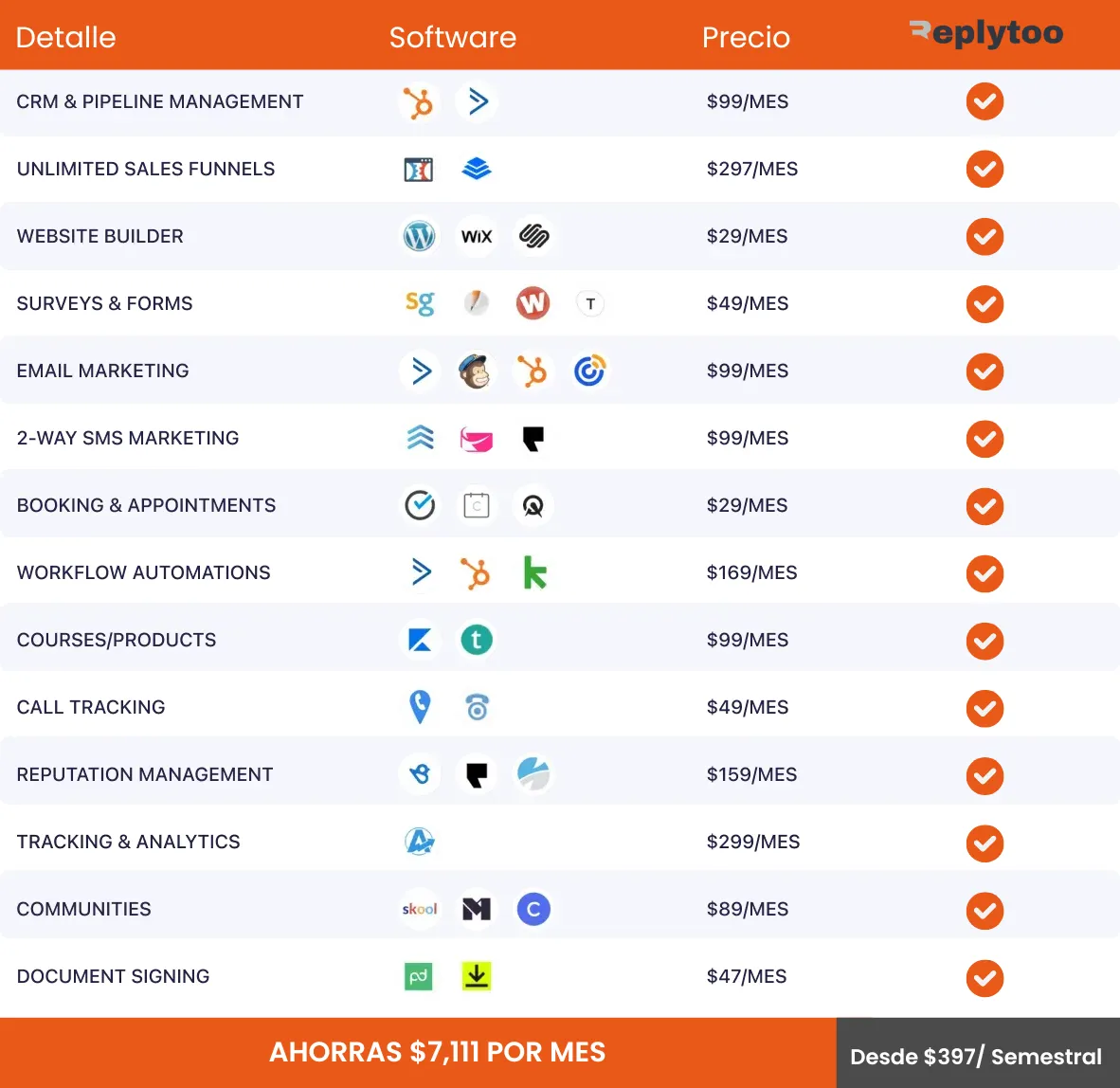 Ahorra cientos de dólares al mes reemplazando múltiples herramientas.